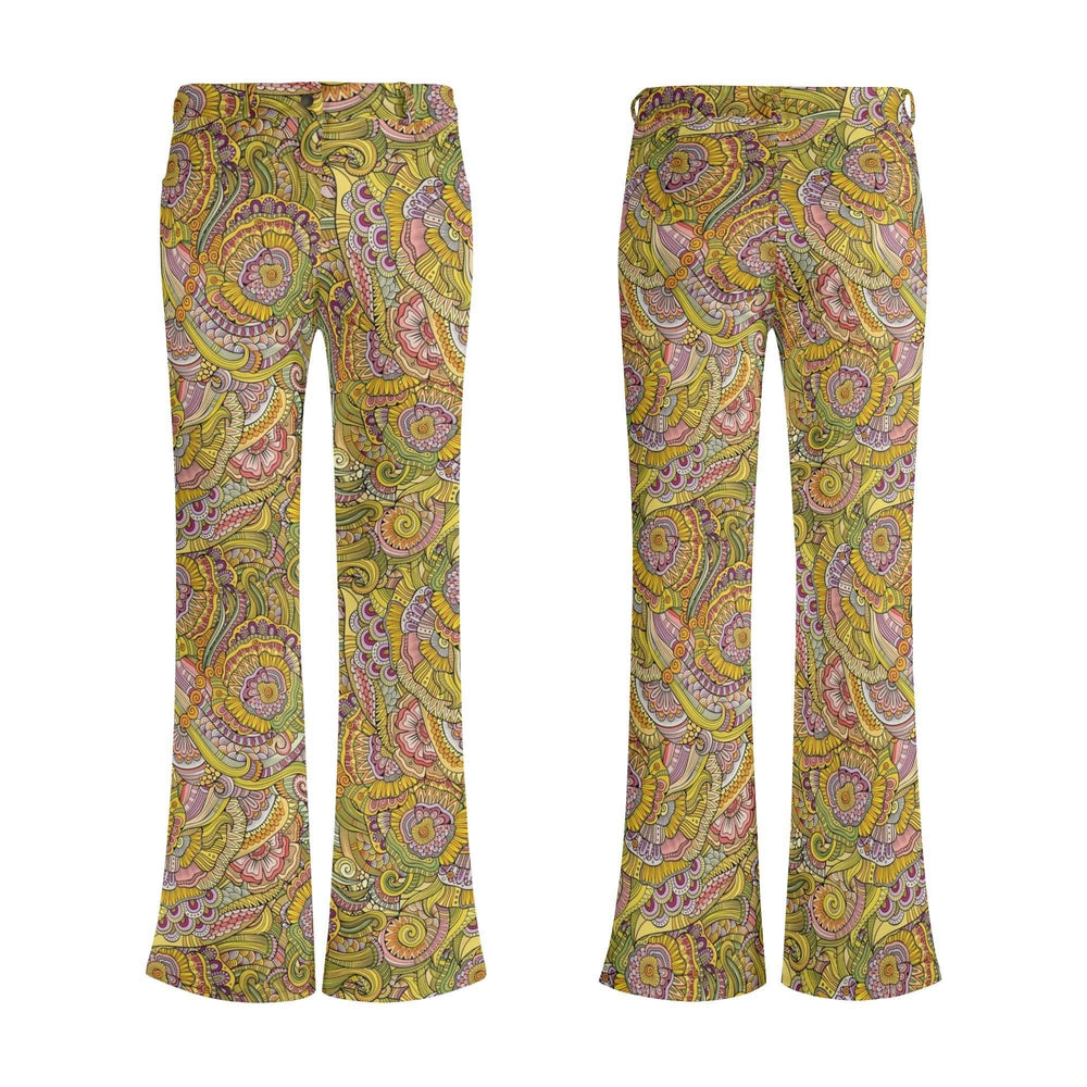 Inject some personality into your wardrobe with these groovy paisley flares, the epitome of boho-chic fashion. These must-have bell bottoms feature a mid-rise waist, 2 front pockets, and a sneaky front zipper with a button (because who doesn't love a good surprise?). Pair them perfectly with our matching Wanda pieces for a totally on-trend vibe.