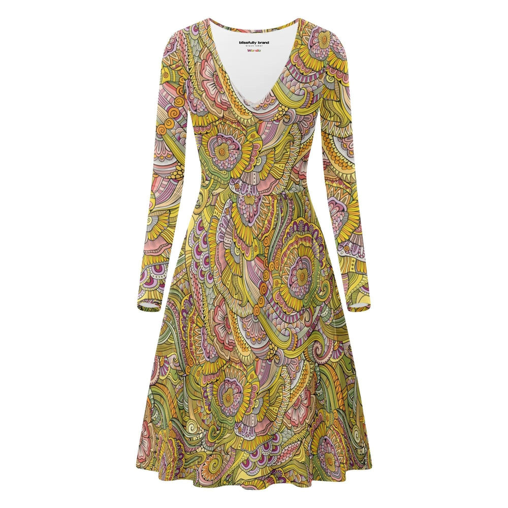 Unleash your inner bohemian goddess with our stunning Wanda A-Line Dress. This masterpiece marries timeless elegance with a burst of vibrant patterns, creating a look that's both mesmerizing and unforgettable. With a medley of intricate designs in rich, eclectic hues, this dress is destined to be your go-to choice for any occasion. Whether you're attending an art gallery opening, a rooftop brunch, or just dancing the night away, this Wanda patterned dress guarantees you'll be the center of attention. Embrace the flowy silhouette and feel empowered by the confident, carefree spirit it brings out in you.