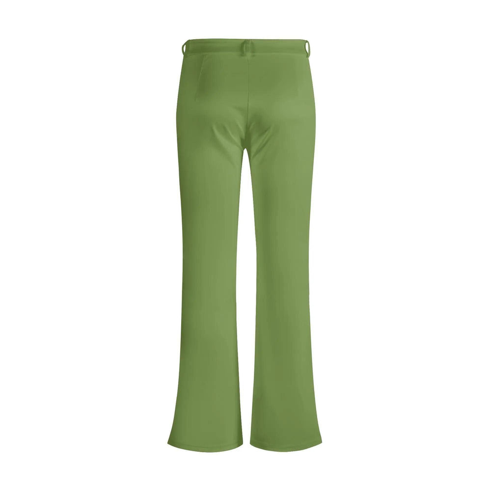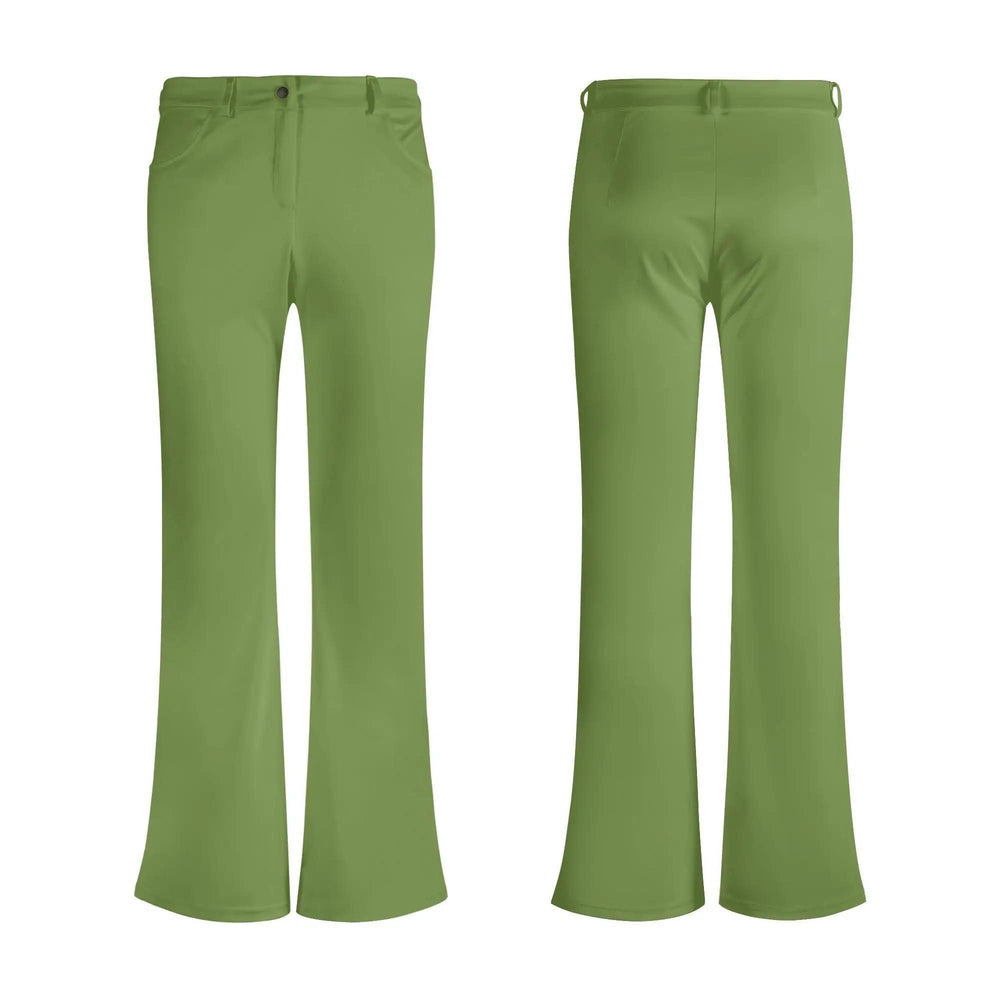 Take your fashion game to the next level with these stunning, solid Wanda Wasabi Green Flare Pants. Perfect for the boho-chic fashionista, these must-have bottoms have a mid-waist style, 2 front pockets, and a concealed front zip with button. Complete the aesthetic with other coordinating Wanda pieces.
